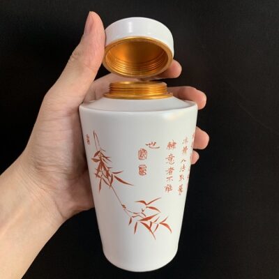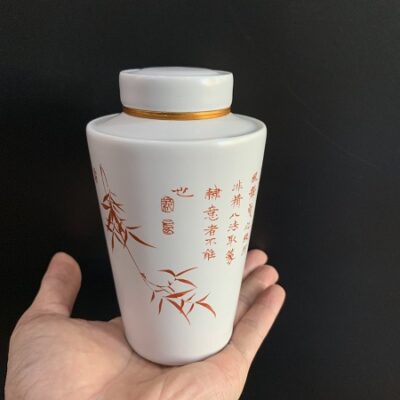 Đặt mua Lọ đựng trà sứ nắp xoáy kín dáng cao họa trúc đẹp 350ml HT29