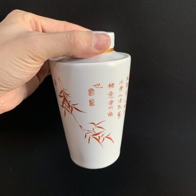 Lọ đựng trà sứ nắp xoáy kín dáng cao họa trúc đẹp 350ml HT29