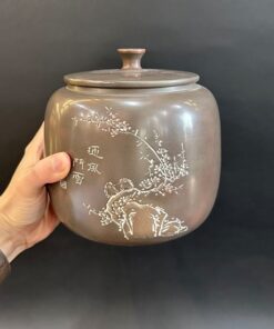 Đặt mua Lọ đựng trà tử sa nê hưng hỏa biến mai lan cúc trúc thủ công dáng thấp HT99