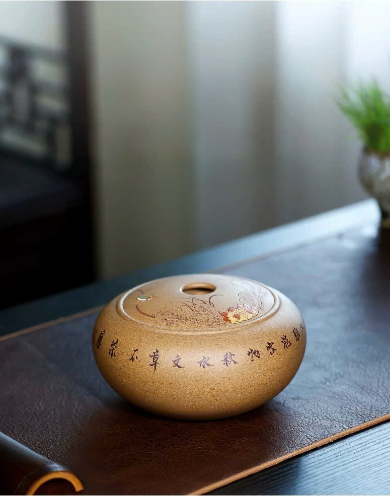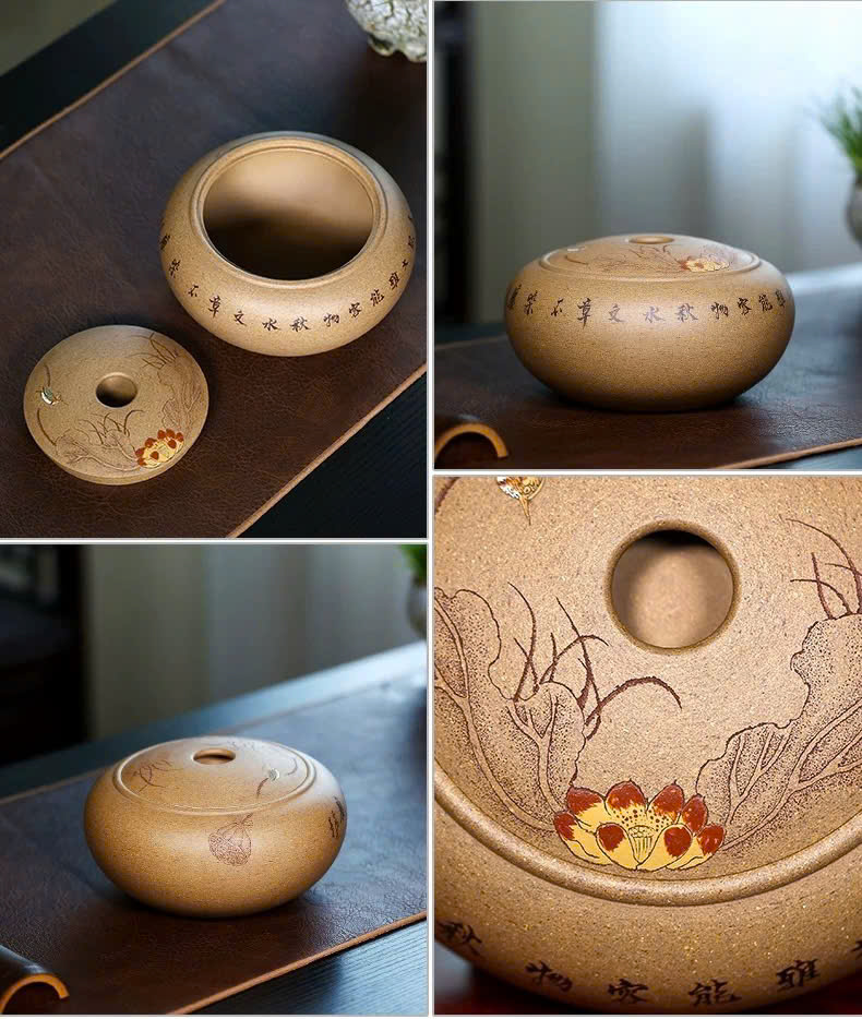 Đặt mua Lọ đựng trà tử sa nguyên khoáng đất cũ thủ công dáng tròn HT77