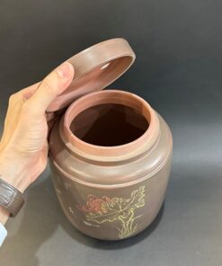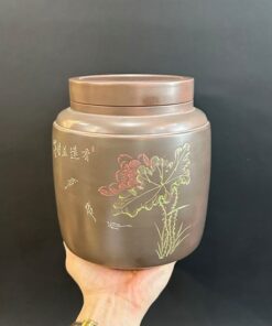 Đặt mua Lọ đựng trà tử sa nê hưng trà lên men thủ công khắc sen đẹp HT61