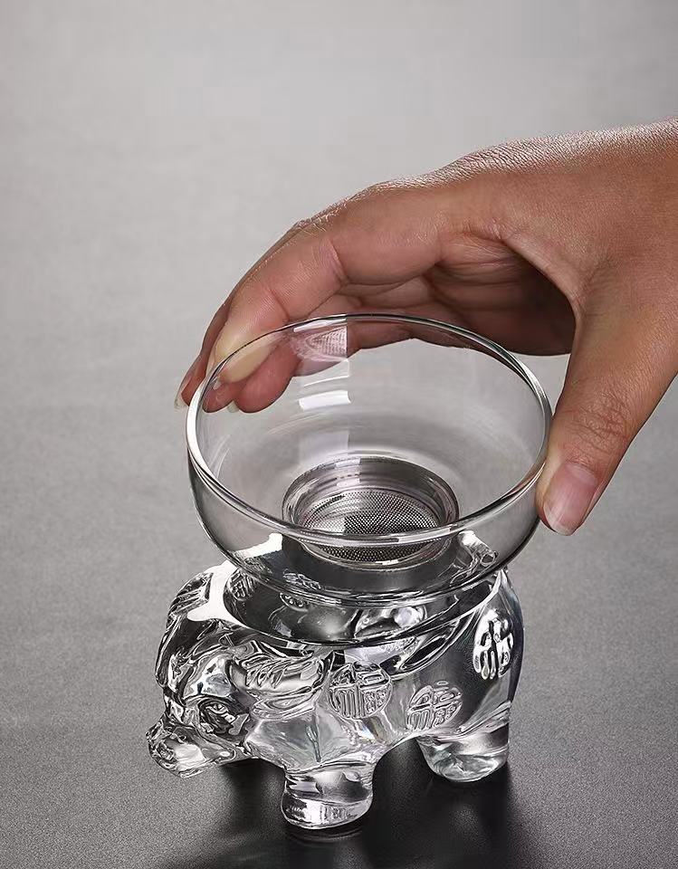 Lọc trà thủy tinh cao cấp hình trâu màng lọc inox 304 bền đẹp LT06
