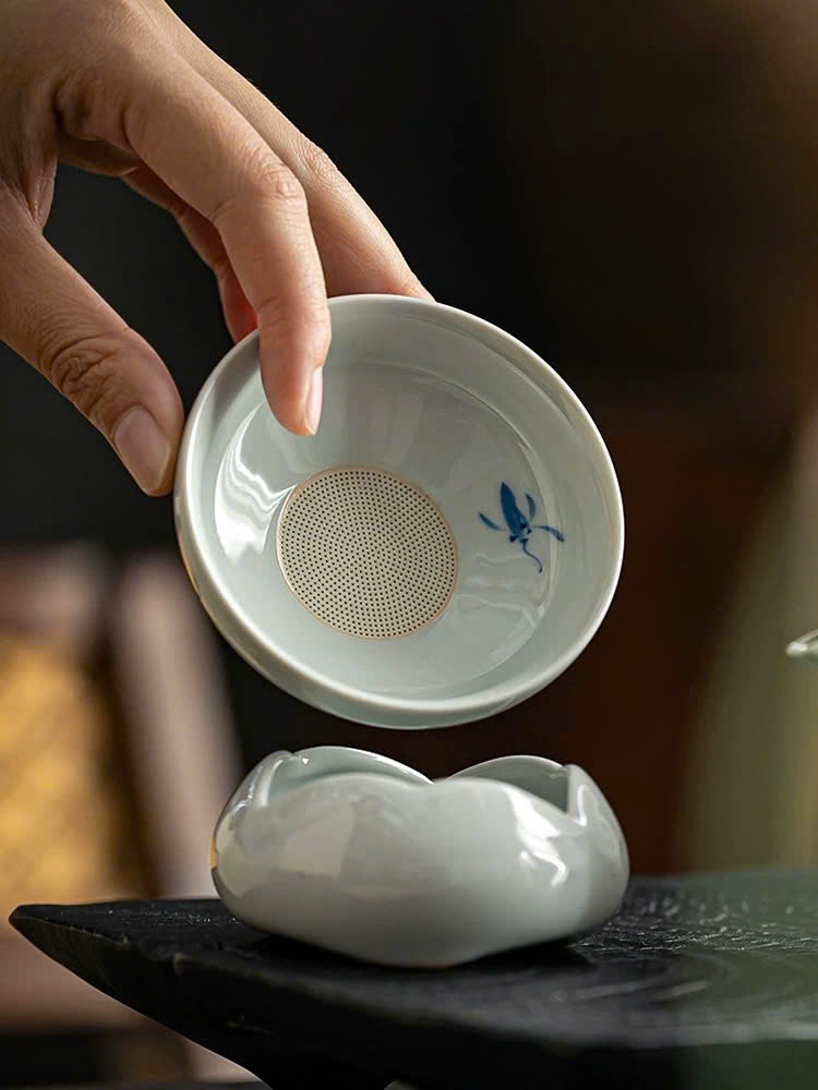 Lọc trà sứ gốm men lam cao cấp đẹp màng lọc đục thủ công nhỏ LT34