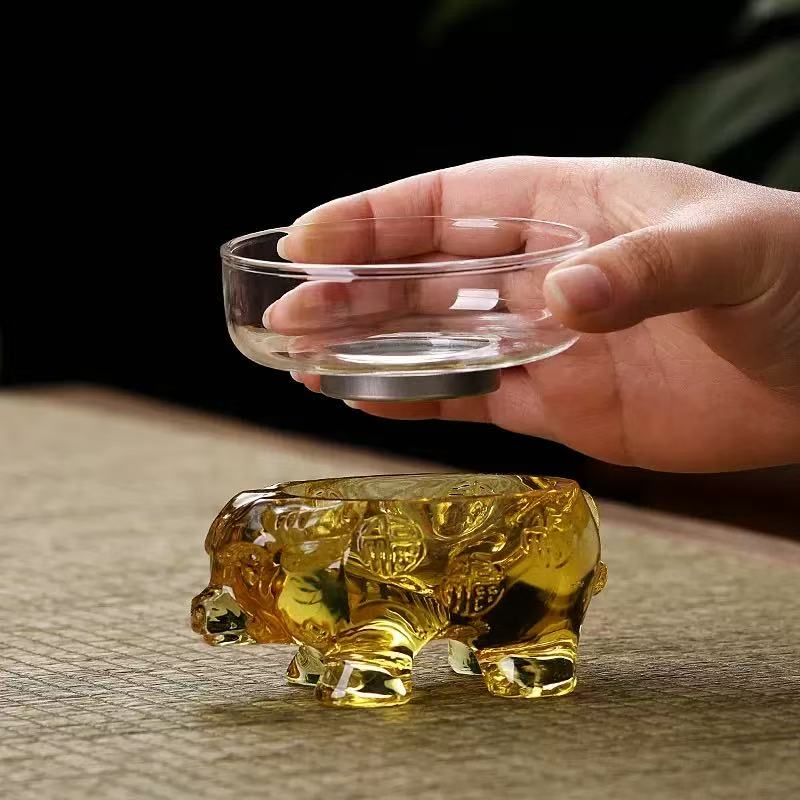 Đặt mua Lọc trà thủy tinh cao cấp hình trâu vàng màng lọc inox bền đẹp LT09