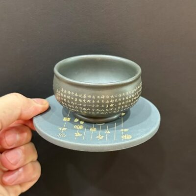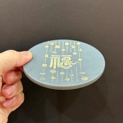 Lót chén trà gốm tử sa dáng tròn thủ công đẹp 9.5cm bày bàn trà.