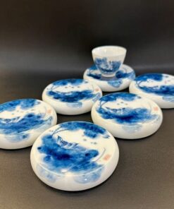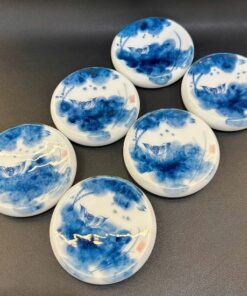 Đặt mua Lót chén trà sứ cảnh đức vẽ tay hoa sen dáng tròn dày đẹp 9.8x1.8cm LC47