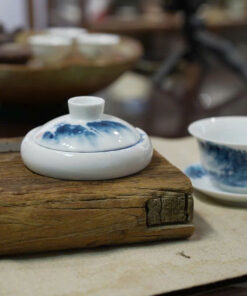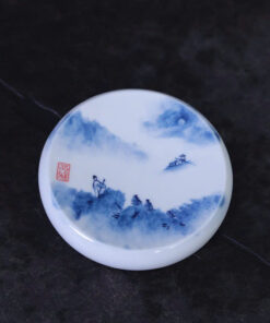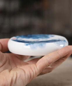 Lót ly trà sứ cảnh đức vẽ tay sơn thủy dáng tròn dày đẹp 9.8×1.8cm LC47