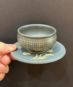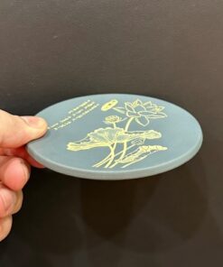 Lót ly trà tròn đẹp gốm tử sa xanh họa tiết hoa thủ công bày bán trà.
