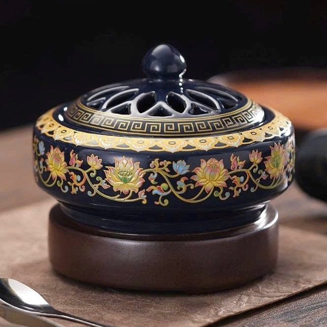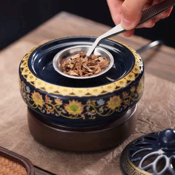 Lư điện xông trầm hương dạng bột và miếng cao cấp bằng sứ có hẹn giờ và chỉnh nhiệt độ.