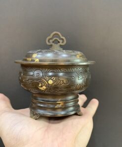 Đặt mua Lư đồng đốt trầm nụ và nhang vòng nguyên chất dáng đỉnh 520g LD17