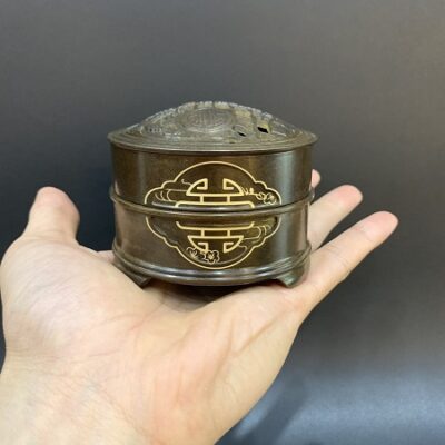 Đặt mua Lư đốt trầm bằng đồng nguyên chất lục thời song hỷ đẹp 420g LD06