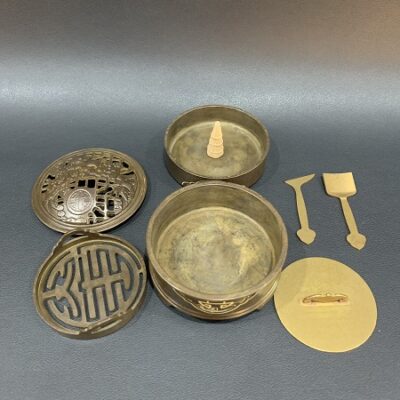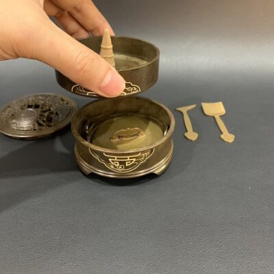 Lư đốt trầm bằng đồng nguyên chất lục thời song hỷ đẹp 420g LD06