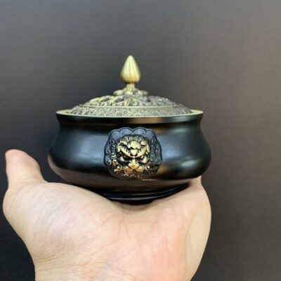 Đặt mua Lư đốt trầm bằng đồng hắc sư tử nặng 695g đẹp LD07