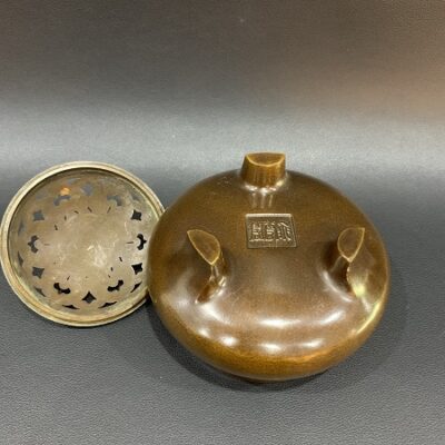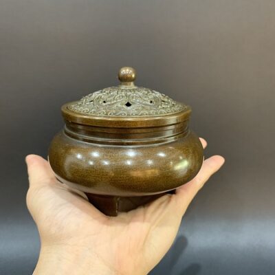 Lư đốt trầm bằng đồng đỏ dáng đỉnh phỏng cổ như ý 1,2kg đẹp LD04