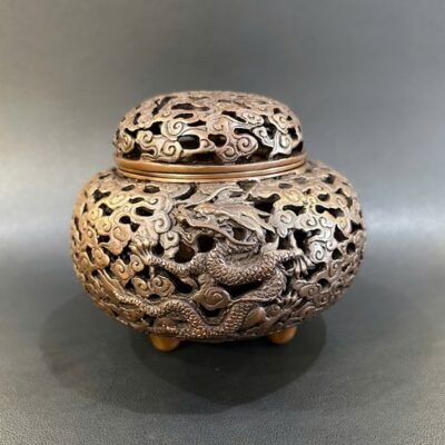 Lư đốt trầm hương bằng đồng nguyên chất cỡ lớn long phụng đẹp 2kg LD63