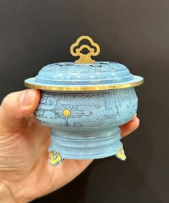 Lư đốt trầm hương bằng đồng nguyên chất xanh pháp lam 470g LD47.