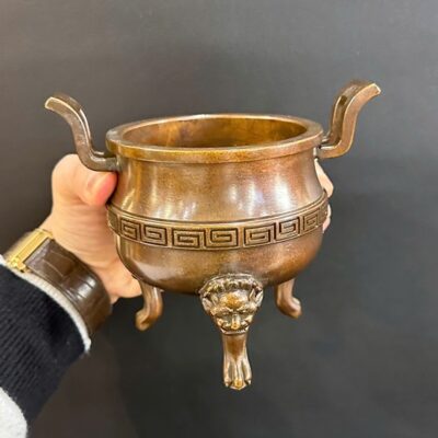 Đặt mua Lư đốt trầm hương dáng đẹp bằng đồng nguyên chất 3 chân 984g LD19