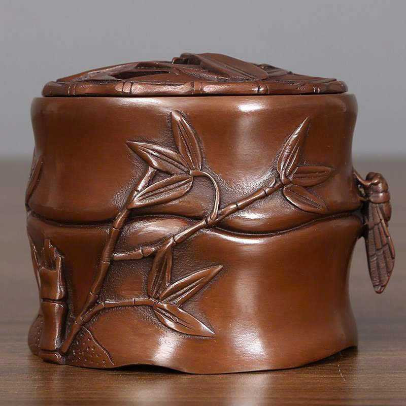 Đặt mua Lư Trầm Đồng Đỏ Khắc Trúc LD66
