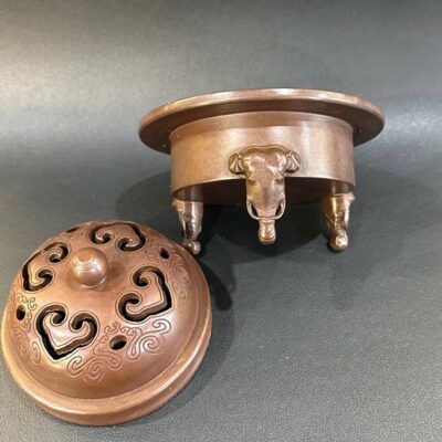 Lư trầm hương bằng đồng đỏ nguyên chất dáng đỉnh 3 chân đẹp 950g LD25