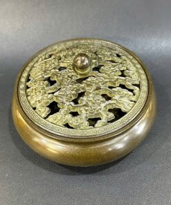 Lư trầm hương bằng đồng nguyên chất dáng thấp phỏng cổ đẹp 770g 10x6cm LD32