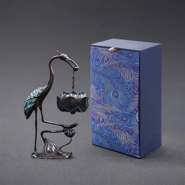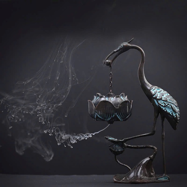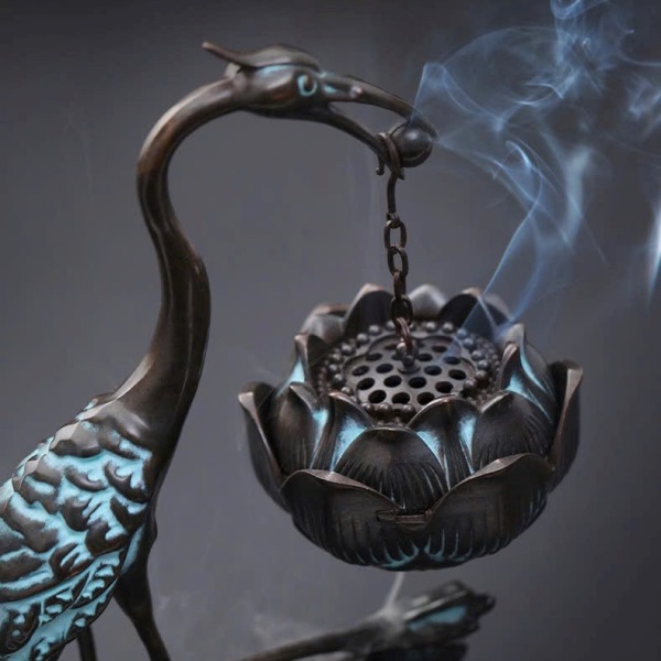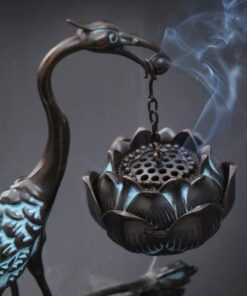 Lư trầm hương bằng đồng nguyên chất dạng treo sen hạc đẹp LD16