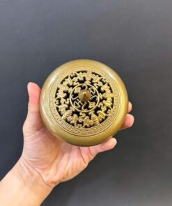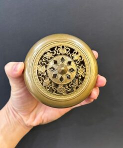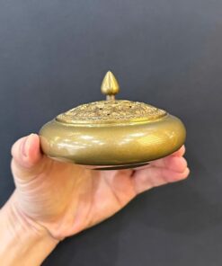Lư xông trầm hương bằng đồng vàng nguyên chất dáng dẹt 580g 8x6cm LD46