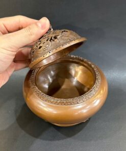 Đặt mua Lư xông trầm bằng đồng nguyên chất cỡ to đẹp có đế kê 1620g 13x8cm LD52