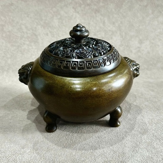 Đặt mua Lư xông trầm bằng đồng nguyên chất dáng đỉnh to đẹp 1,7kg 12x14cm LD60