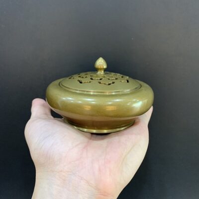 Đặt mua Lư xông trầm bằng đồng nguyên chất họa tiết phỏng cổ đẹp 795g LD12
