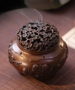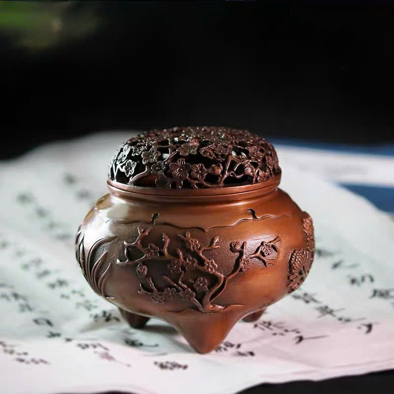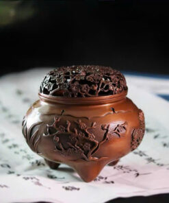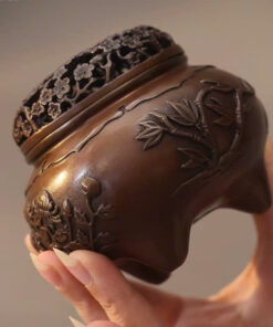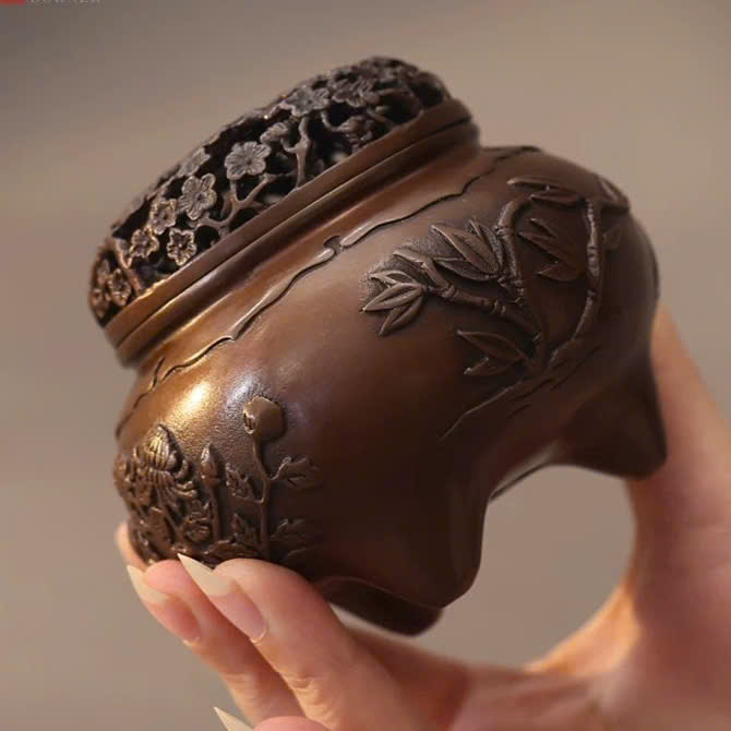Lư xông trầm bằng đồng nguyên chất mai lan cúc trúc đẹp 900g 12x8cm LD53.