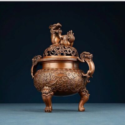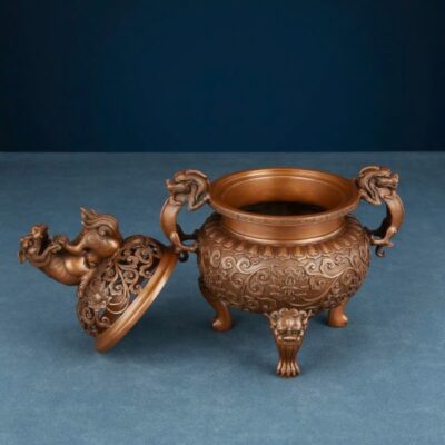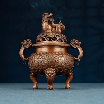 Đặt mua Lư xông trầm đồng nguyên chất nghê tọa đỉnh thủ công đẹp LD54