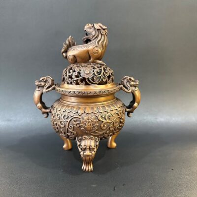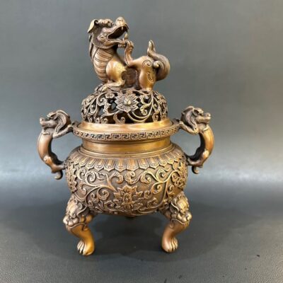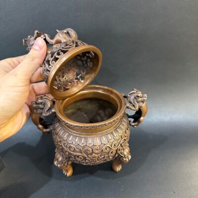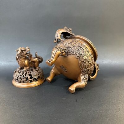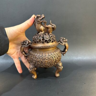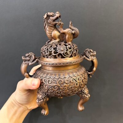 Lư xông trầm đồng nguyên chất nghê tỳ hưu cao cấp cao 18cm LD64