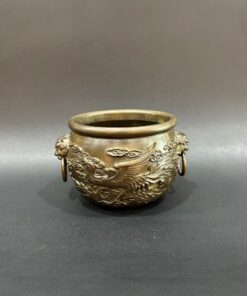 Lư xông trầm hương bằng đồng nguyên chất dáng đỉnh không chân to đẹp long phụng.