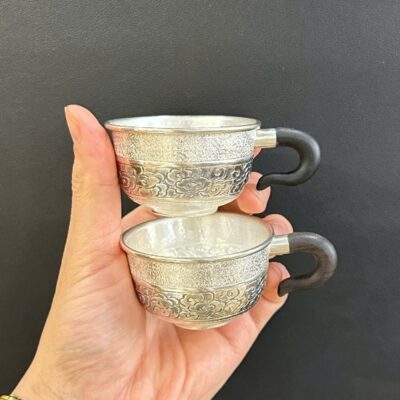 Ly trà bạc nguyên chất 999 làm chén uống trà có quai đẹp nặng 60g CB91