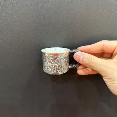 Ly trà bạc nguyên chất 999 làm chén uống trà có quai hình ngựa đẹp CB88
