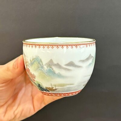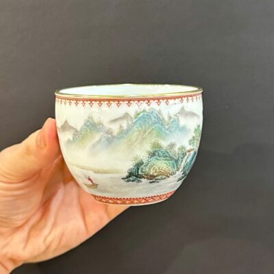 Ly trà cảnh đức cao cấp làm ly trà chủ vẽ tay sơn thủy thủ công 100ml đẹp CS49
