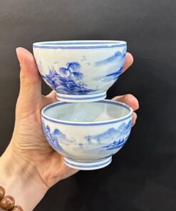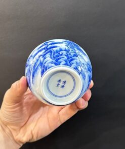 Ly trà chủ sứ cảnh đức men lam cao cấp vẽ tay thiên lý giang sơn 130ml CS83