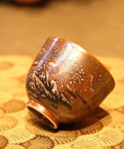 Ly trà chủ sứ cảnh đức men nâu vẽ tay cảnh núi tuyết đẹp 90ml CS79