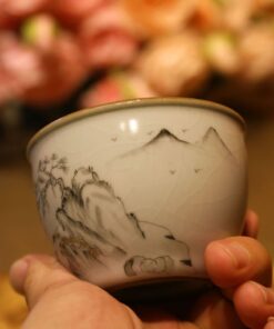 Ly trà chủ sứ cảnh đức men rạn cao cấp vẽ tay leo núi 120ml CS79