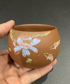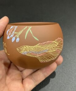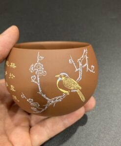 Ly trà chủ tử sa nê hưng vẽ tay thủ công làm chén chủ màu đỏ 150ml CNH26