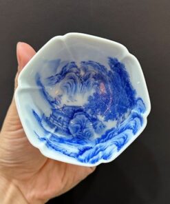 Ly trà sứ cảnh đức cao cấp dáng lục phương vẽ tay thủ công 100ml CS84.