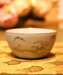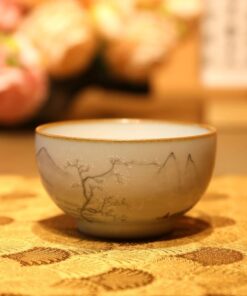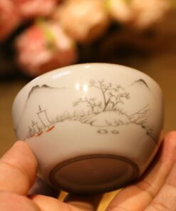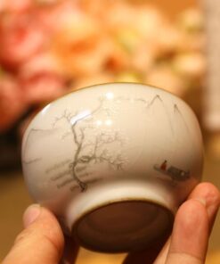 Ly trà sứ cảnh đức dáng miệng loe gốm men rạn cao cấp vẽ tay 120ml CS79
