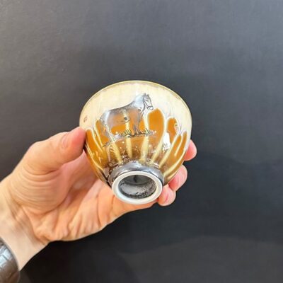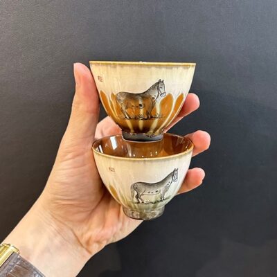 Ly trà sứ cảnh đức gốm thái hội hỏa biến thủ công vẽ ngựa đẹp 80ml CS33