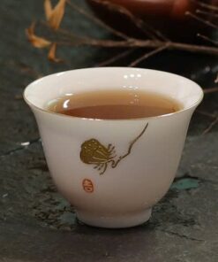 Ly trà sứ cảnh đức men lam họa sen cỡ nhỏ đẹp 65ml uống trà ngon.