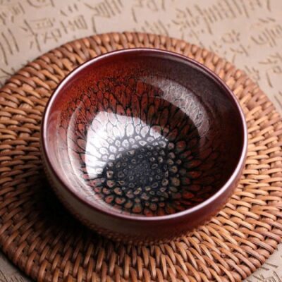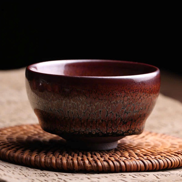 Ly trà thiên mục giọt dầu ánh vàng Châu Kiến Cường thủ công 100ml CTM73