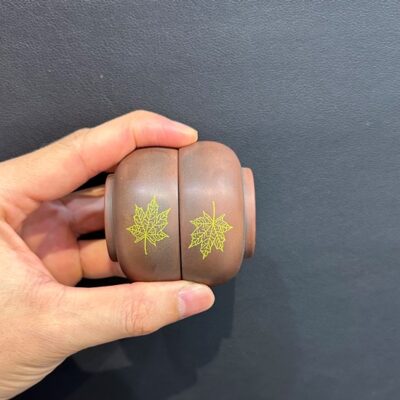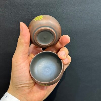 Ly uống trà tử sa hỏa biến cỡ nhỏ cao cấp khắc lá thủ công đẹp 40ml CNH11