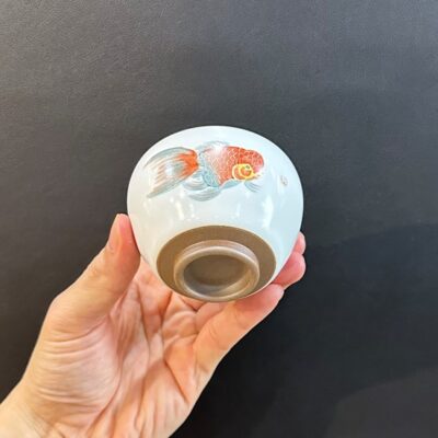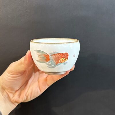 Ly uống trà sứ cảnh đức gốm thái hội nung củi vẽ tay cá vàng 80ml CS34