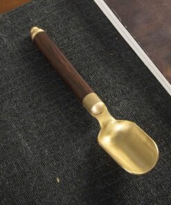 Muỗng xúc trà inox vàng cán gỗ cao cấp dễ cầm 17.7x3cm bền đẹp.