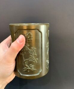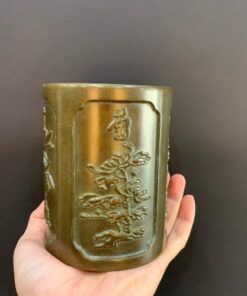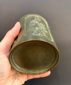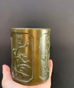 Ống đựng dụng cụ trà bằng đồng nguyên chất tứ quý 12x9cm mai lan cúc trúc.