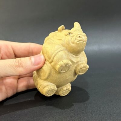 Đặt mua Tượng tử sa tê giác cỡ nhỏ nguyên khoáng đất cũ bày bàn trà đẹp TS66